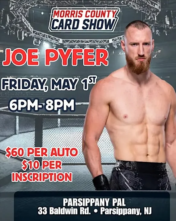 Morris County Card Show is proud to present a public autograph signing with UFC Fighter JOE PYFER! Come on out to the show with several dealers and grab an autograph or two! Tickets available now, and mail-ins accepted if you cannot attend.