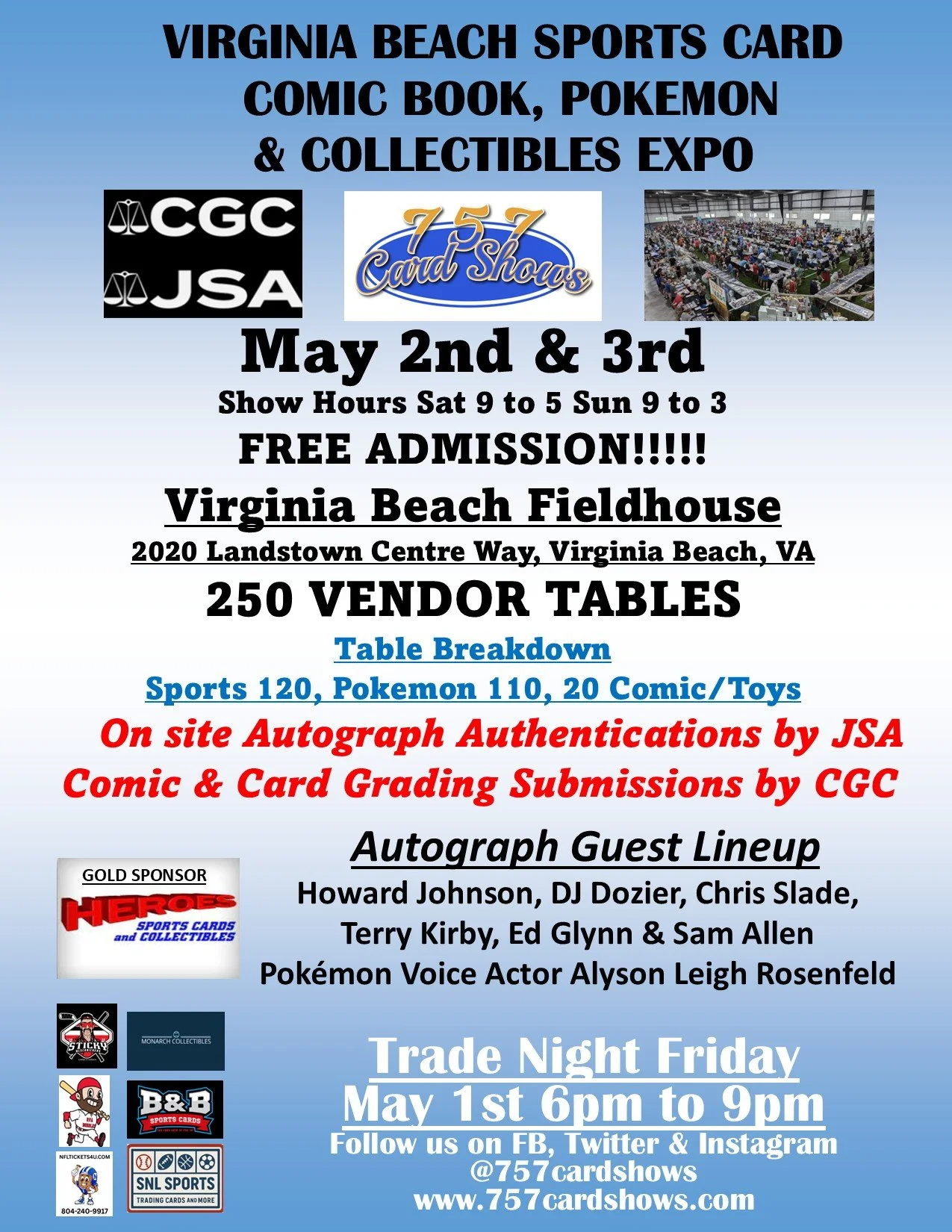 Saturday May 2nd & 3rd don't miss Tidewaters largest and favorite Card & Collectibles Show!